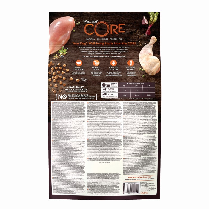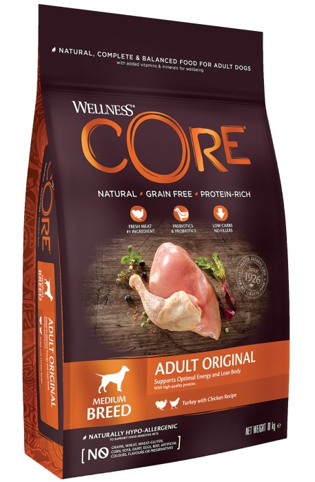 CORE Original är ett spannmålsfritt och proteinrikt fullfoder med färsk kalkon som huvudingrediens.