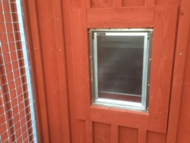 - Den genomskinliga luckan med aluminiumlister släpper in ljus och låter hunden hålla koll på omgivningen.
