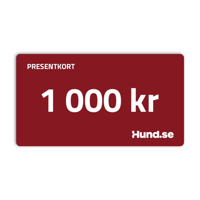 Ett presentkort från Hund.se är alltid välkommet. Köp presentkort via vår hemsida, vi e-postar sedan ett presentkort (som .pdf-fil som ni kan skriva ut om ni vill) till er med en unik kod som ni kan använda som betalning via hemsidan.