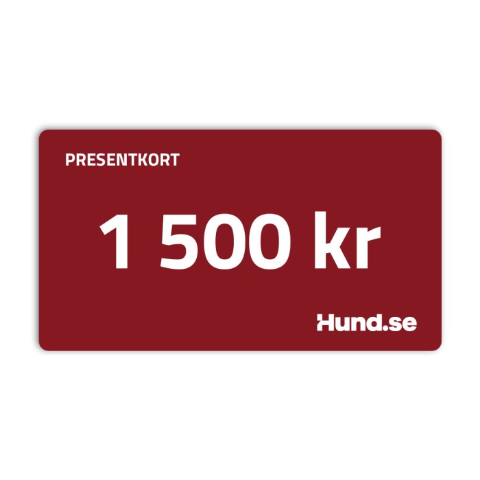Ett presentkort från Hund.se är alltid välkommet. Köp presentkort via vår hemsida, vi e-postar sedan ett presentkort (som .pdf-fil som ni kan skriva ut om ni vill) till er med en unik kod som ni kan använda som betalning via hemsidan.