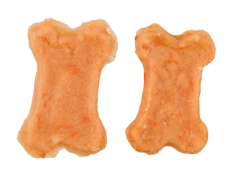 Ingredienser: Kycklingkött (67 %), morötter (10 %), rismjöl, vegetabiliska proteinkoncentrat, vetemjöl, vegetabiliska biprodukter, mineralämnen.